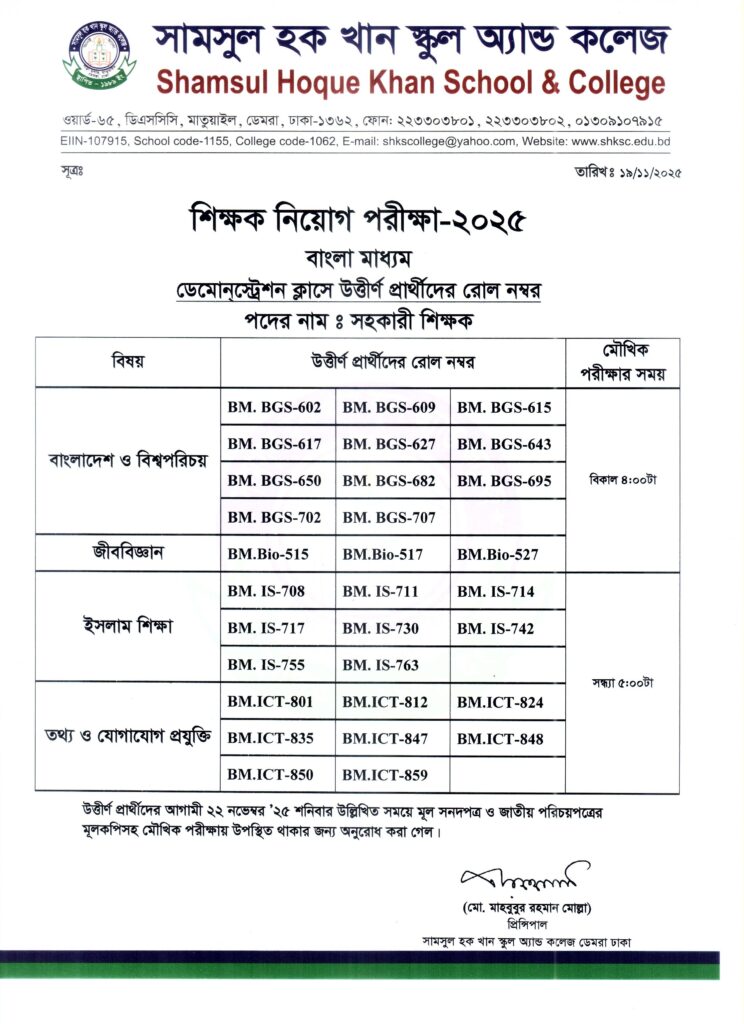 ১৯-১১-২০২৫ তারিখে ডেমোনেস্ট্রশন ক্লাশে (বাংলা মাধ্যম) উত্তীর্ণ প্রার্থীদের তালিকা